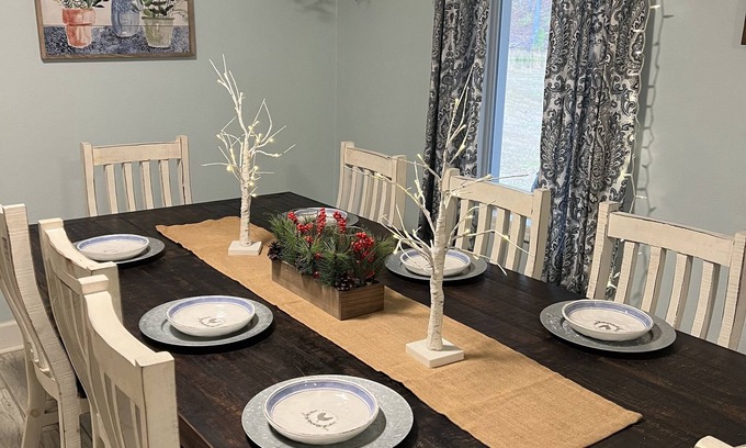 We have all the full amenities from a walk-in shower to a front porch for just sitting and enjoying the sunshine and cool breeze under the cedar trees! There’s also a pier that you can walk out on and go fishing and back porch with a Charcoal grill if you want to cook out with your family! There are TVs in every bedroom, and a 75 inch TV in the living room with surround-sound . Along with free Wi-Fi. This place feels like it’s miles away, but it’s in the center of everything. Feel free to explore the property, we have several trails that are well laid out, if you and the family would like to have an evening stroll, in the woods. This is our little piece of paradise, there are deer, turkey and fish come and enjoy with your family time away from your phones and the businesses of this world plus we’re centrally located if you have a wedding or any other event, you might want to attend in the Montgomery, Wetumpka, or Eclectic area!