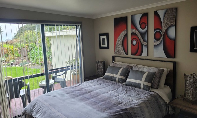 This room is attached to our house but you will have your own private entrance close to the parking area. The Sunrise has a lot of amenities. Smart tv, frig,microwave jug and coffee and tea supplied outside your room are a few more options for cooking such as induction plates and bench top oven and sink.Short walk to town and convenient to awesome places to visit such as Farewell Spit and the West Coast.