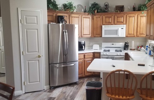 Twin Home located on the Green springs Golf Course in Washington Ut. Great area view with wooded area between you and the golf course that makes for great evening talks on the deck with your quest. Has a kitchen area with a dinning room table in the front and a living room with a large screen tv. The master bedroom has a king bed with a shower and a separate tub with a walk in closet and 2 sinks. Down Stairs has a bedroom with a door to the shower and tub in the bathroom. The tv room downstairs has 2 folding down twin bunk beds along with couch and big screen tv. Internet is available with a garage and a grill for those outdoor barbaqes. Spa is open all year long and the pool April thru Oct.