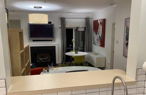 Faces courtyard, very quiet building/condo unit. Large bathroom with deep soaking tub. Second TV in bedroom. Balcony with table and chairs. Bed sheets are 600 thread count. Includes assigned garage parking space. Street parking also available.
