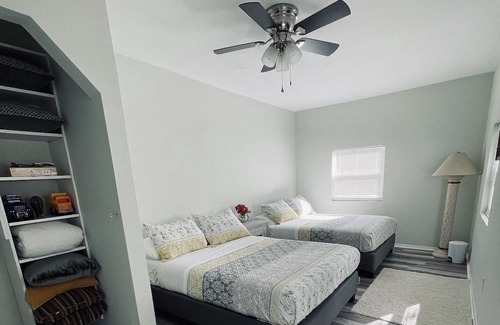 Green Acres is located on a traffic free street. Recently undergone renovations, creating a charming and inviting atmosphere. Conveniently close to town and easily accessible from I95. This accommodation is ideal for groups of four, but can comfortably accommodate up to six guests. The house features a queen bedroom with a TV, a second bedroom with two full-sized beds suitable for solo travelers or couples who don't mind sharing a slightly smaller space.