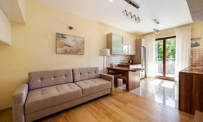 Green District 2BR AirConditioned P is a quiet apartment located in one of the most ecological districts of Warsaw - Bemowo. Numerous parks and other green areas make it the perfect place to take a break from the hustle and bustle of the city. The apartment is located in a modern building in a quiet area with immediate proximity to a forest park and close access to the city bypass, which is also the S8 and A2 route. There is plenty of interesting attractions nearby. Particularly noteworthy are Osiedle Przyjźń, where the builders of the Palace of Culture and Science lived, Babice airport, where various cultural events are organised, and Fort Bema, where you will find charming cafes and a rope park.