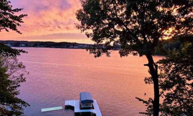 Beautiful Green Lake home in Caledonia, Michigan! Just 20 minutes from downtown Grand Rapids, this peaceful lakefront property is perfect for boating, swimming, kayaking, fishing, and paddle boarding. The home sits on a hill 30 feet above the lake and offers breathtaking sunset views from the deck and hot tub. The house sleeps 11 but there's room for 12 - 14 if guests are OK using our 2 queen air mattresses.