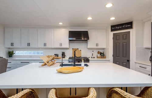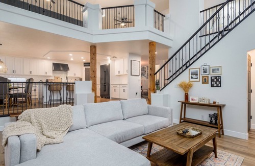 Step inside and experience the spacious, open-concept design that flows effortlessly from room to room. With four beautifully appointed bedrooms and three and a half baths, there's plenty of room for everyone. The home is thoughtfully designed with high-end finishes, contemporary furnishings, and inviting spaces to relax and unwind. The fully stocked kitchen boasts all-new stainless steel appliances, including a toaster oven, stove, and oven, along with everything you need for meal prep—from pots and pans to wine glasses and cocktail glasses. Gather around the large dining table for a family meal or cozy up in the living room with a 60” TV, perfect for movie nights or catching the big game. Upstairs, an additional lounge space with a 50” TV offers another great spot to unwind.