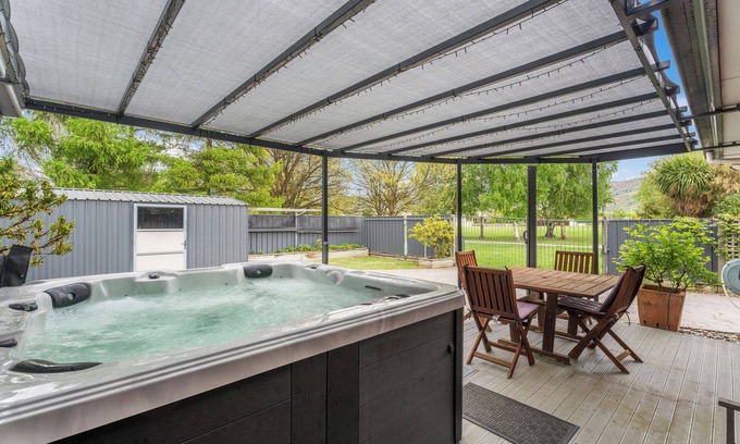 The indoor-outdoor flow expands your living space onto two private outdoor areas, perfect for soaking up the sun. Gather and unwind with comfortable seating, a spa pool, BBQ, and deck, views across established gardens to the Pisa Ranges, creating an idyllic setting in which to host family and friends.
