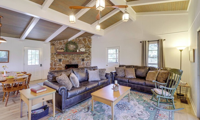 Your next lake getaway is sure to be a hit at this quiet and convenient Greers Ferry vacation rental. This 4-bedroom, 2-bathroom cabin sits on 5 private acres nestled among the greenery of Devil’s Fork Recreation Area and features boat ramp access, a quick walk to the shoreline, and water views from the spacious screened porch. Bring your boat and other watercraft to park on-site, then get out on the water and enjoy beautiful lake days under the sun!