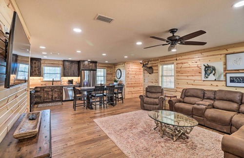 Nestled on 40 acres in Greers Ferry, AR, this charming vacation rental house is great for active families with a passion for fishing, hiking, swimming, and more! This single-story abode offers 3 bedrooms, 2 bathrooms, an open floor plan, and a great location less than a 1/4 mile to Greers Ferry Lake. Watch a stunning sunset from the covered deck, then kick back and enjoy a movie night on one of the Smart TVs. Start your adventure here — book today!