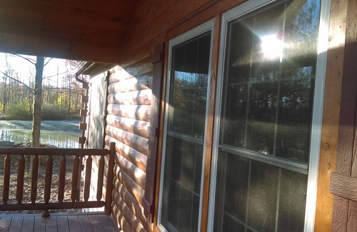 WINE COUNTRY and 4 season retreat! Serene Finger Lakes region relaxing cabin, 10 minutes to Keuka Lake. A calming getaway for winter, spring, summer and fall! This cabin is close to many wineries and breweries and distilleries, as well as many beautiful finger lake attractions such as antiquing, hiking and more! Sit by the firepit relax , and "get away" from the hustle and bustle in this peaceful modern open concept ranch cabin. Heat and central A/C in all rooms and also beautiful propane gas fireplace. This open style log cabin ranch is 1400 square feet located on a 5 acre lot with a stocked fishing pond. Located in Branchport N.Y. this private peaceful retreat is nestled on 5 acres in "nature's wonderland" in the Finger lakes region, just 22 miles to Bristol skiing Mountain ski resort ! Enjoy winter fun here at our cabin as well, we provide 4 sets of snow shoes to use with your rental .We are located near MANY wineries, breweries and even a distillery! Large playground at Keuka State park is just 10 minutes away. Our cabin has 3 bedrooms , each bedroom has a queen size bed and there is an additional twin bed in the third bedroom , there are 2 bathrooms , large open family room , a fully stocked spacious kitchen with dishwasher, island and large oak table .There is NEW Washer& Dryer located in the mud room .Wi Fi is available in this cabin! This cabin has a new lazy boy sleeper for additional sleeping( double size mattress) sectional sofa which is located in front of a warm inviting gas fireplace a great place to snuggle up in front of after cross country skiing, hiking or snow shoeing. This cabin is equipped with a smart TV and internet & private house phone. This tranquil retreat overlooks 2 beautiful ponds that can be viewed on the cabins relaxing porch for catch and release fishing. Fire pit is next to the cabin and firewood is provided! We have a propane grill for your grilling needs. Located in the finger lakes region ( just 10 minutes from Keuka Lake) it is nearby many great attractions and outdoor activities for all seasons, these include many wineries, many nearby restaurants, Hi Tor Wildlife Management, Keuka Outlet trail, Roseland water park, Cummings nature center, Grimes Glenn park , Havill pottery, Bristol Mountain Ski resort and aerial adventure, Watkins Glenn, Corning glass, and Glenn Curtis Museum , CMAC, Bristol Valley Theater ,Wild Goose chase Antiques ,Finger lakes Boat Museum ,Blueberry picking at the Sugar shack, ,Oak Hill Bulk foods, Folk Art Guild in Middlesex. Come renew your spirit, enjoy a peaceful stay surrounded by beautiful nature and amazing starlit nights , you won't be disappointed! Come relax, unwind and soak up natures tranquility.