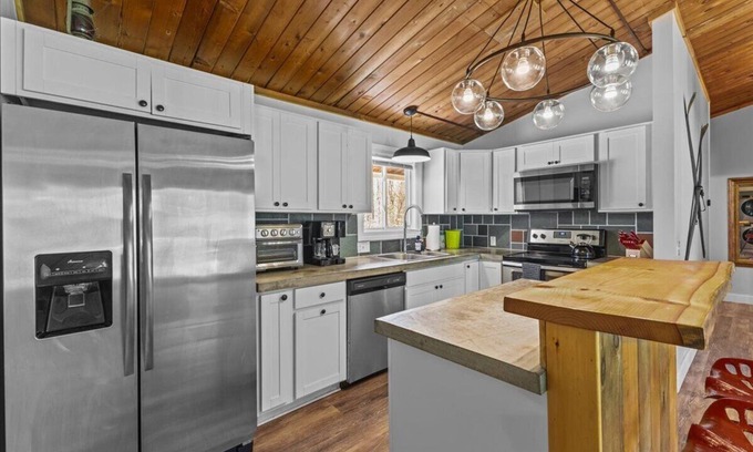 Chalet 3 at the Griffin Country Lodge is conveniently located on Mountain Rd, ~ 1 mile to Stowe Resort! Chalet 3 offers a full kitchen, amenity-filled living space (smart TV w/ sound system), and plush king beds in each bedroom. Sit out on the deck and take in the views or go to the swimming hole in the river out back. Walk to the Stowe Rec Path, Matterhorn Bar/Grill, and Topnotch Resort and Spa. Bike to the Farmers Market and breweries from the Stowe Rec Path.