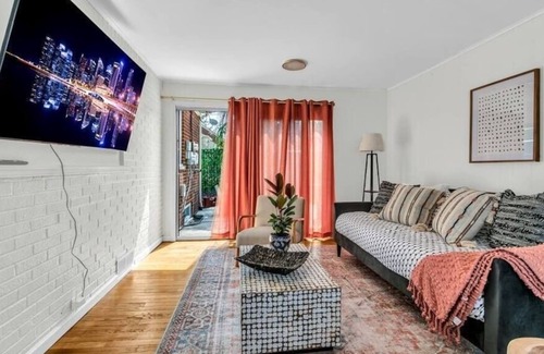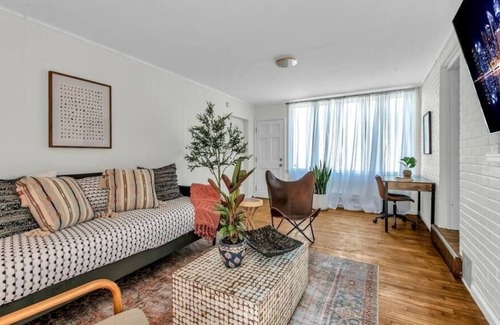 This home has a living/ family room with a smart TV and plenty of seating including a day bed. There is a new, full kitchen with a separate dining area. It has one full bath. There is a private patio with seating and string lights and a grill. The garage allows for secure parking, and there is a washer/dryer on-site. All you need to feel at home while you're on the road.