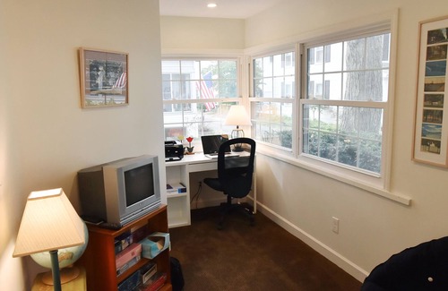 A cozy study also on the first floor contains a flat-screen TV equipped with basic cable service and a DVD player; a pullout double bed; and a desk area with a provided HP laserjet printer. High-speed cable wifi is also included in your rental. We also have an assortment of family games (Scrabble, Sorry, Clue, etc.); playing cards; jigsaw puzzles; and light summertime reading matter.