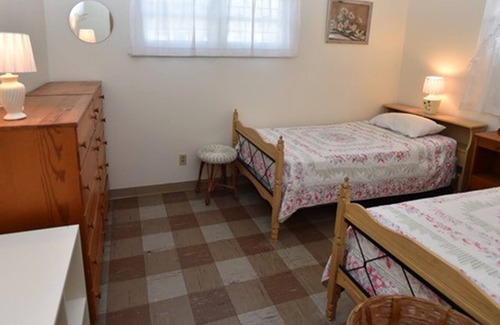 Outdoors, there is a small front flagstone patio for bike storage (4 adult bikes and 2 kid bikes come with the cottage); a supplied red wagon to tote kids or beach “stuff”; and two bins for beach-supplies storage—plus an outdoor shower and a foot-washing station. And a back peastone patio contains a large stainless-steel gas grill (with supplied propane tanks), a picnic table and benches, and a round table and chairs. We even provide a complete cornhole game set—two boards and two sets of beanbags! There are also three dedicated parking spaces immediately adjacent to the cottage.