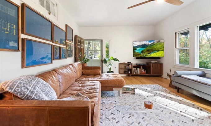 Tucked away in the heart of the Poconos, Grotto Grove offers the perfect escape for couples, small groups, or solo travelers seeking nature, privacy, and elevated comfort. This cozy, modern cabin blends rustic charm with thoughtful amenities - surronded by towering trees, private hiking trail, and a beautifully hardscaped firepit area under the starts.