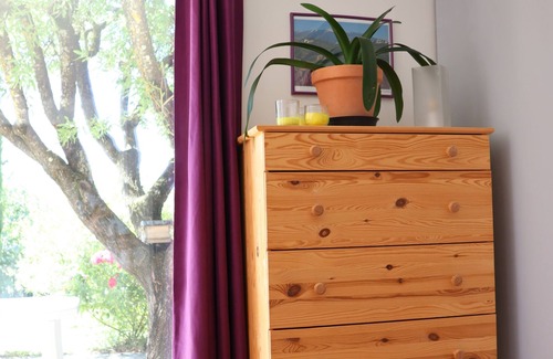 Holiday rental in ground garden of an accommodation in a villa with swimming pool to share with the owners staying on the 1st floor.