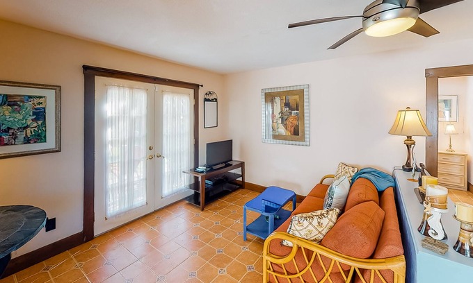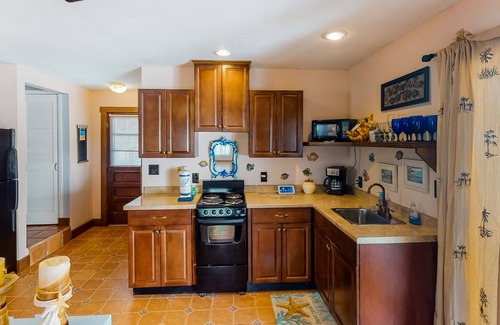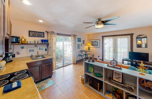 Escape to this cottage for a peaceful retreat near the beach! Between trips out to the shore, you can enjoy a garden view as you cook up simple meals in your private kitchenette. Tile-style floors throughout and a breezy layout will help you feel like you're on vacation throughout your stay. The ground floor setup makes navigating easier for guests who have trouble with stairs.