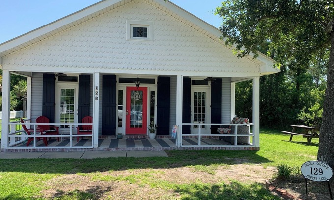 Located just 600 feet away from the white sandy beaches of the Mississippi Coast, the CREOLA BEACH COTTAGE is an open and airy, family-friendly villa.