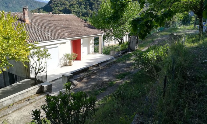 New apartment of 90m2, fully equipped with air conditioning, on the ground floor of a villa with two terraces, for 4 or 5 people in an authentic Corsican village located in the Alta Rocca.