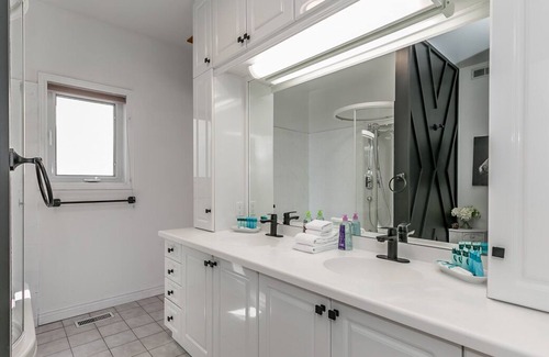 As you approach the property, you the rugged rock face cliff area and tranquil natural beach with an incredible sandbar are just a hint of the grandeur and adventure that awaits you! Drive through the tree lined driveway into this exclusive, private indoor and outdoor oasis that will sleep up to 20ppl comfortably and offers a multitude of activities. Parking is available for 12+ vehicles. Racquetball or Squash anyone? How about Tennis? With an indoor Racquetball/Squash court - you can play ball even on rainy days. The outdoor Tennis court is lit up for day or night enjoyment and offers a different experience depending on the time of day. Up for something different? Grab the provided rods and discs, head to the lower level deck and flip a coin to see who is the first to play a full size game of Shuffleboard! The double tier deck, facing the water offers a place to enjoy your favourite beverage in the twilight or cozy up with a good book listening and watching through the glass railing as the water flows to the shore. The retaining wall elevates both your position and the view. Picturesque views of the sunsets over the lake will close out your days while listing the crackling sounds from the oversized fire pit until the evening stars fill the night sky.