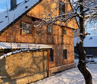 Grudza83 Bikepoint is a recently renovated farm stay in Mirsk where guests can make the most of its garden and shared lounge. Housed in a building dating back to 1924, this farm stay is 14 miles from Dinopark and 15 miles from Szklarska Poreba Bus Station. There's an outdoor fireplace and guests can access free Wifi and free private parking. At the farm stay, some units have a private entrance, dining area, fireplace, and dishwasher. Some accommodations include a terrace with mountain views, a fully equipped kitchen, and a private bathroom with bath. The rooms are equipped with heating facilities. Guests can keep up their exercise routines during yoga and fitness classes. A bicycle rental service is available at the farm stay, while skiing and cycling can be enjoyed nearby. Death Turn is 15 miles from Grudza83 Bikepoint, while Izerska Railway is 16 miles away. Copernicus Wrocław Airport is 76 miles from the property.