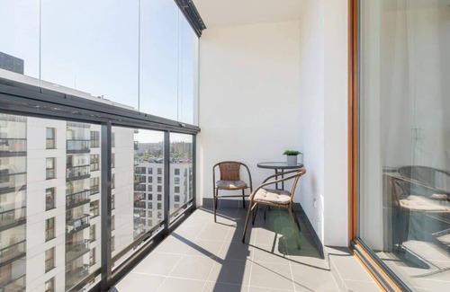 This comfortable and elegant studio is designed for four people. It is located on the eleventh floor of a modern building, allowing guests to enjoy the magnificent landscape from the furnished balcony. A table and two chairs have been placed outdoors, so visitors can enjoy their morning coffee in a relaxed atmosphere. The decor is subdued yet stylish - shades of gray, white and beige appear. The available space has been efficiently developed with practical equipment. In the living area, there are two double sofa beds, a table for comfortable remote work, a capacious closet, a television and a dining table with chairs. In the kitchen area there are such appliances as a capsule coffee machine, oven, microwave and kettle. This allows for quick and easy preparation of a variety of dishes and snacks. The bathroom locates a shower along with towels, a welcome toiletries kit, a hair dryer and a washing machine. The studio is a great choice for both short and long-term stays. Business travelers, as well as friends or families can come here.