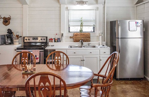 Adorable Guadalupe River cabin with 2 bedrooms (sleeps up to 8) located across from the Guadalupe River and River Inn Resort. The house is near La Junta, Heart of the Hills, Camp Mystic, Crider’s rodeo, and 6.5 miles from The Hunt Store where guests can fill up their gas tank, enjoy a meal, pick up snacks and beer/wine, and even buy some worms for some good river fishing! Also, the property is located 40-50 miles from Leakey, Garner State Park, Fredericksburg, and Bandera.