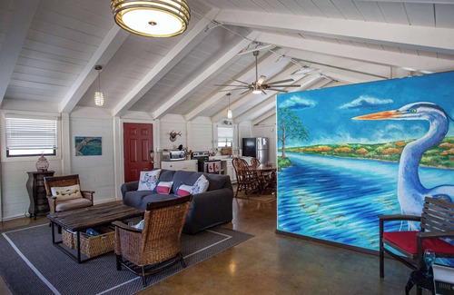 Located right on the Guadalupe River in Hunt, TX, this home offers a true Hill Country escape. Guests can enjoy kayaking, swimming, and riverside lounging, or explore local spots like Stonehenge II, Schreiner Park, or take a scenic drive to Kerrville or Ingram. Hunt is known for its natural beauty, peaceful vibe, and outdoor recreation, making it perfect for both adventure and relaxation.