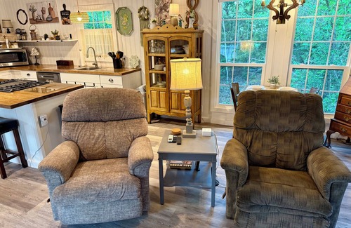 Welcome to this charming countryside getaway. 640 square feet. More than 50% larger than “tiny homes”. Bring your dog! Work from home with high speed WiFi.