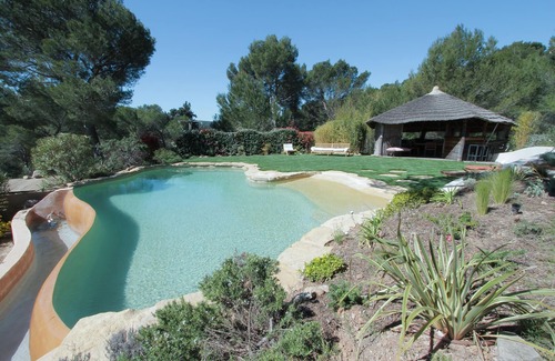 The new villa, imagined by an architect anxious to integrate the construction in the surrounding nature is located in the heart of a pine forest. The large fully glazed living room is built on stilts and offers a 360 ° panoramic view from the Sainte Victoire mountain to the Sainte Baume. The infinity pool and its hut complete a park with an exceptional view. Designer and luxurious furnishings.