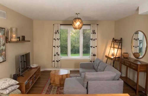 You have a fully equipped kitchen to use, a wonderful lounge area to relax and watch tv, a dining area for enjoying your efforts in the kitchen and playing board games. There’s a small private outdoor area with seating for two. If you are working remotely during your stay there is desk in the living area or set yourself up at the kitchen breakfast bar. The full and half bath are newly renovated and make getting ready for your day enjoyable. You also have private access to your own laundry area. The comfortable, cozy queen size bed is the perfect place to end your day or to have a mid-afternoon nap.