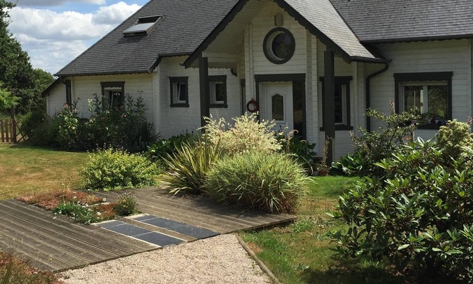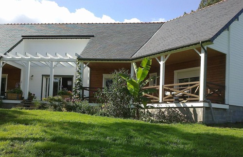 Charming house located on the Gacilly, an art village and the famous photo exhibition, 2 steps from one of the most beautiful villages in France: Rochefort en Terre. Shops and restaurants on site. Activities suitable for families. You will appreciate your suite with private bathroom in a large charming wooden house for the ambiance, the outdoor spaces, the light and the private terrace. My accommodation + STUDIO is perfect for couples, solo travelers and business travelers. Optional breakfast (supplement 7 euro / person) Courtesy tray in the room (tea, coffee, etc.). Private hot tub accessible from your room (temp 38 °) Enjoy a relaxing bath head to the stars.