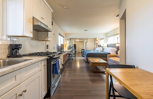 Beautiful Studio in a peaceful middle class neighborhood. There are two homes on the same property that are completely separated. This is the back studio with private parking, private entrance, and washer and dryer. It has a nice yard and a patio area for sitting and relaxing.