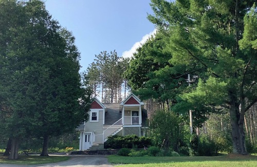 Our 30 acre farm property is located on a quiet country road just 6 kms from Sutton Village, a haven for cyclists, hikers, skiers and wine enthusiasts. The village features 2 brewpubs, a good choice of restaurants, fun shops and beautiful Mt. Sutton to explore. Enjoy spectacular views and sun rises from your private balcony or patio, cycle along the surrounding backroads or just enjoy some quiet time in front of the wood burning stove or outdoor fire pit.