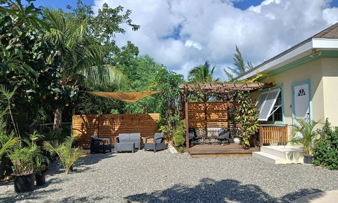 On the outskirts of bustling George Town, nestled in a quiet, cozy neighbourhood, is our tranquil guest suite with private entrance. This quaint accommodation is close to Spotts Public Beach, a known haven for sea turtles and snorkellers alike. There are also many amenities nearby including supermarkets, gas stations and restaurants which are accessible within minutes by car. Take a 30-minute drive eastward (or as we locals say 'East') and you will find a more traditional Cayman to explore. If you prefer to keep it low key, we have a picturesque shady deck and garden area where you can sit, relax, take in the sounds of mother nature and catch the breeze. The suite is equipped with a queen size bed, A/C, flat screen TV, Wi-Fi, kitchenette, shower with hot water, washer and dryer, and more. You will have all the comfort and conveniences, your home away from home. We look forward to your stay!