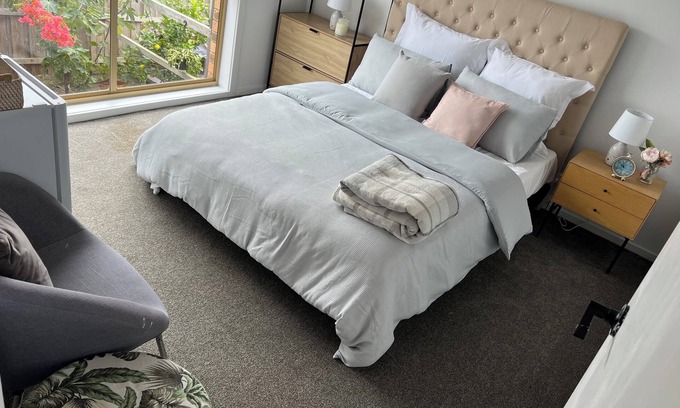 Experience the comfort of your own private entrance to your cosy suite with work space and kitchenette. Tempur mattress with a reclining bed perfect for reading and putting your feet up. Peaceful garden views and outdoor space with a secure undercover parking spot. Location is incredibly convenient! 6 minute drive to the airport & 3 minutes to freeway. 2 min walk to bus stop restaurants, grocery store, pub, doctors, hairdressers, laundry mat and a river/bike trail at your doorstep. Only 20km to Melbourne Zoo, Botanical Gardens, Queen Victoria Market Art Galleries, Museums and Theater. 22kms to the vibrant St Kilda Beach