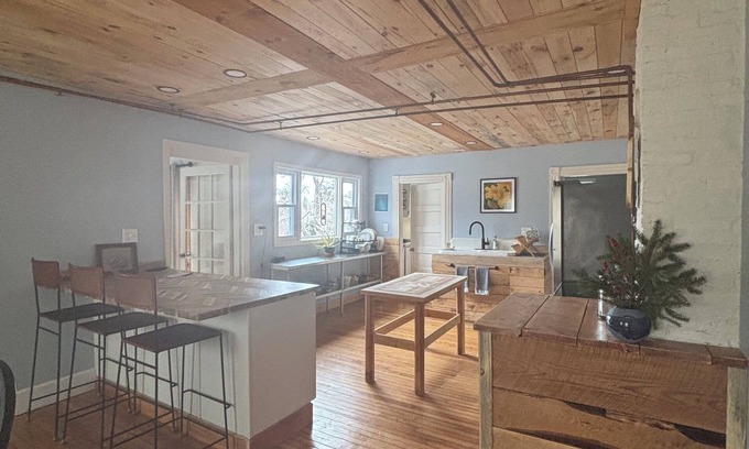 Bright, open private apartment in an old NE farmhouse. Onsite at The Root cafe which showcases local talent, espresso drinks, tea and delicious farm-to-table food. Featuring mountainous adventure trails and local attractions minutes away. Great for a one or two day getaway or set up perfectly for a longer stay.