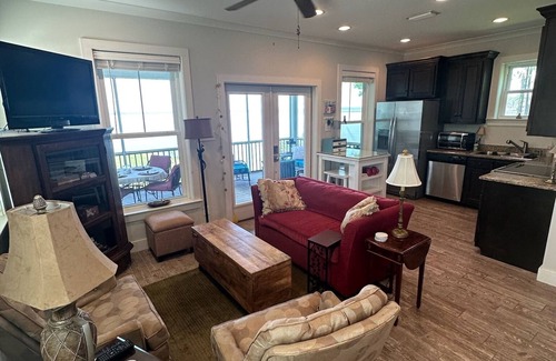 It is situated on pilings and is up one flight of stairs that lead to a breezeway. Your house is to the left and the host’s house is to the right. We’ll be available to address any needs should they arise during your stay.