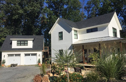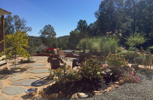 Escape to our guesthouse on a mini working farm. This peaceful setting tucked away on several acres along a creek with nature trails is the perfect mountain getaway. We are conveniently situated near quaint wineries such as King Family, breweries along with hiking and the Blue Ridge Parkway that is a short hop, jump and a skip away. Every effort has been made to keep this a green haven, chemical and synthetic scent free, so you can leave recharged and rested. Non-smoking