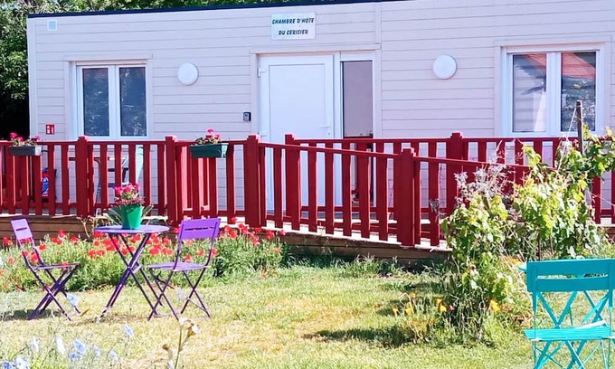 This stylish accommodation provides a trendy backdrop to your stay. This 20m2 room will allow you to stay in complete comfort in the Gâtinais and Orléans forest region. It has free Wi-Fi and intranet access. Canal + TV. Free parking. This room is equipped with a refrigerator and microwave. Tea and coffee area. Air conditioner . Your host Éric also offers table d'hôte, ask him for information. Chambre d'hôte du Cerisier is an independent annex to the Chantilly gîte in a new bungalow. Fully equipped for people with disabilities. Facing the garden you can enjoy the wooden terrace for reading and rest. You are in a very quiet area, in a small village 3 km from the town of Lorris, where you have all the shops and supermarket with gas station. Montargis 23 km north, Gien 25 km southeast. Table d'Hôtes by reservation at 27€ per person (18€ per meal per child). Room suitable for people with reduced mobility. Access ramp, sink and Italian shower with wheelchair accessible seat. raised toilet Arrival from 5 [hidden] and departure at 11 [hidden] Entrance is at 2 rue du Borneau 45260 Noyers. Property managed by a professional. Unless stated, services such as cleaning, bed linen, towels etc. are not included in the price of this rental. If pets are allowed (information in the advertisement), charges may be applicable. Only equipment mentioned in this advertisement are present. Equipment not mentioned are not considered to be present.