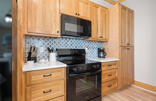 Whether you're whipping up a fresh seafood feast or prepping snacks for a beach day, the kitchen has everything you need — stocked for up to 12 guests, including kid-friendly dishware. Appliances include a 10-cup coffee maker, blender, toaster, and thoughtful safety features on every level like fire extinguishers and fire safety blankets.