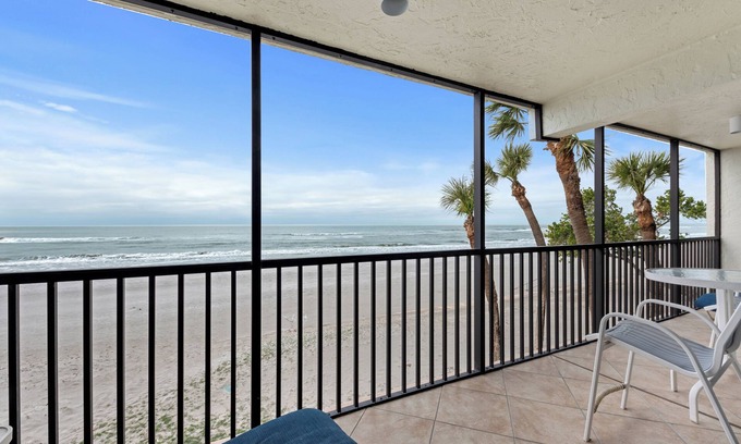 Prime location and luxury !!!! Enjoy spectacular sunsets and incredible water views of the Gulf of Mexico in this upscale, direct waterfront luxury condo. This 2nd floor end unit has incredible unobstructed views of the gulf---- direct views from living area and both bedrooms. Our condo boasts a full length, gulf front lanai with sliding doors from the master bedroom and living room. The second bedroom has its own gulf front lanai with sliding doors. Watch the playful dolphins frolicking in the gulf with your morning coffee. Experience the most magnificent sunsets every night from the lanais. This unit is truly paradise!