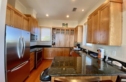 This custom-built home two gulf front master suites each with their own jacuzzi tub. A bunkroom allows for the kids to have their own private space. The layout places the main living area on the third floor so, the elevator comes in really handy when coming in off the beach or pool. There are several other extras included to make your vacation just right, such as private heated pool, laundry room, large expansive decks on two levels along with a large patio space in and around the pool area. Several of the bedrooms include computer work desks for those that must (work) on vacation. The kitchen offers stainless appliances & granite countertops along with all the features a well-stocked beach home should have!