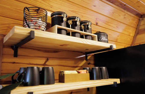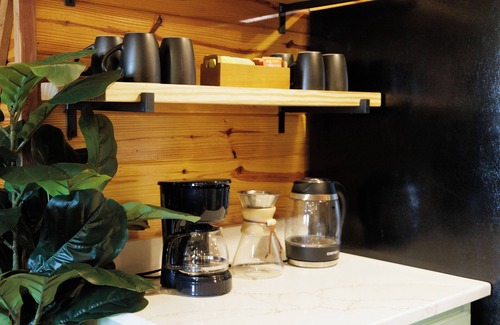 The cabin boasts two beautifully appointed bathrooms: a full bathroom with a spa-like showerhead system for a rejuvenating experience and a convenient half bath for quick access. The fully stocked kitchen is a chef’s delight, equipped with everything you need to prepare gourmet meals or simple beachside snacks. Start your day at the dedicated coffee and tea bar, designed for effortless mornings with our easy to use drip coffee system or for a more artisanal craft experience the pour over coffee system. Temperature controls ensure the home stays just right, no matter the season.