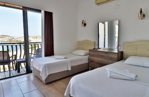 Gumbet Hotel features a seasonal outdoor swimming pool, garden, a shared lounge and restaurant in Gümbet. Featuring a bar, the hotel is close to several noted attractions, around a 13-minute walk from Gumbet Beach, 1.2 miles from Bardakci Bay Beach and a 16-minute walk from Myndus Gate. The hotel also provides free WiFi as well as a paid airport shuttle service. Featuring a private bathroom with a shower and a hairdryer, certain units at the hotel also provide guests with a sea view. At Gumbet Hotel every room is equipped with a closet and a flat-screen TV. Guests at the accommodation can enjoy a continental breakfast. With staff speaking Arabic, English and Turkish, around the clock guidance is available at the reception. Bitez Beach is 1.7 miles from Gumbet Hotel, while Bodrum Marina Yacht Club is 1.7 miles away. Milas-Bodrum Airport is 27 miles from the property.