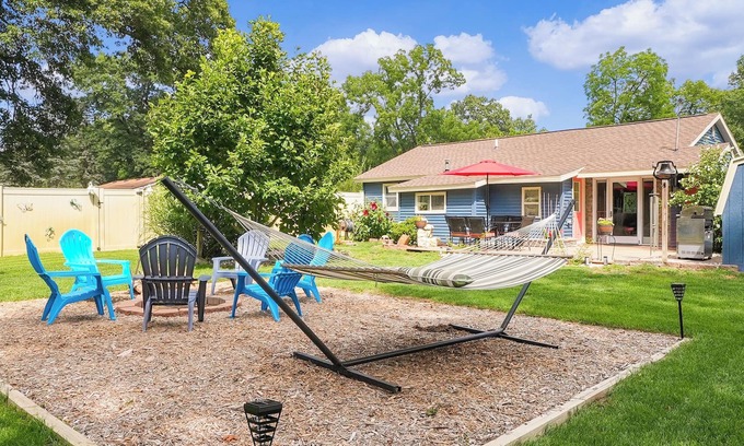 Bring the family (+ up to 2 dogs) together in a peaceful oasis .1 mi from the popular wedding venue Bay Pointe, and less than a mile from Gun Lake – with fenced, private backyard, and everything you need for a relaxing stay. Dine and chill out in the delightful backyard with patio seating, firepit and hammock. You’ll love the special touches, from fully equipped kitchen, coffee/tea bar,workspace, and games. Enjoy the convenience of a step-free home. Guests rave because hosts go the extra mile!