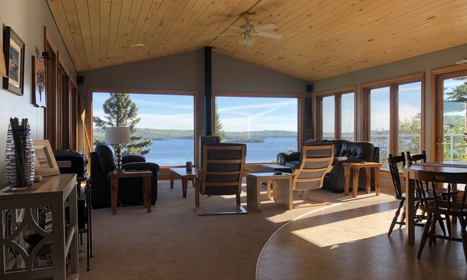Stunning Location: Nestled at 1,944 feet, one of the highest points in Cook County, our cabin offers breathtaking views of the lake, stunning sunrises and sunsets, and even eagles soaring overhead. A gentle breeze keeps the area virtually bug-free, allowing you to relax on the deck or unwind by the stone campfire area.
