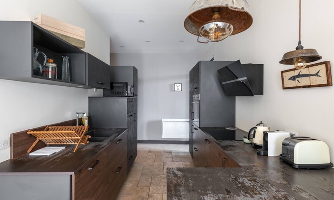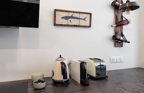 - A kitchen with everything you need to prepare your meals: oven, microwave, worktop, kettle, Nespresso machine, dishwasher and toaster. A table seating 4.