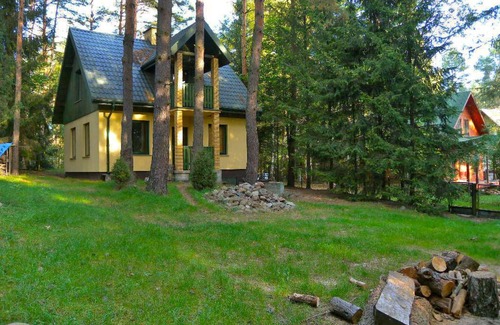 Small, cosy single-family house "Gwiezdna", built in 2008, renovated in 2022, surrounded by trees. Outside the resort, 12 km from the centre, in a quiet, elevated position, 30 m from the lake, located by a road, in the countryside, in the woods. Private: property 1'300 m2 (fenced). Fireplace (sandbox), bathing jetty. In the house: storage room for bicycles. Motor access to the house (1.8 km via unmade road). Parking at the house. Grocery 4 km, supermarket 7 km, restaurant 3 km, bus stop 3 km, railway station 5 km, sandy beach 4 km pebble beach 3 km, indoor swimming pool 6 km, swimming bay 4 km, bathing lake 30 m. Tennis 5 km, riding stable 9 km, children's playground 5 km. Please note: car recommended. Fishing [permit required].