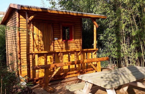 We have set up a "Western cabin" to accommodate you with family or friends (4 people maximum) with a pull-out bed. This cabin is located right next to the trailer, and is connected by the wooden terrace. The toilet and shower are in the trailer. Ideal with teens or friends ...