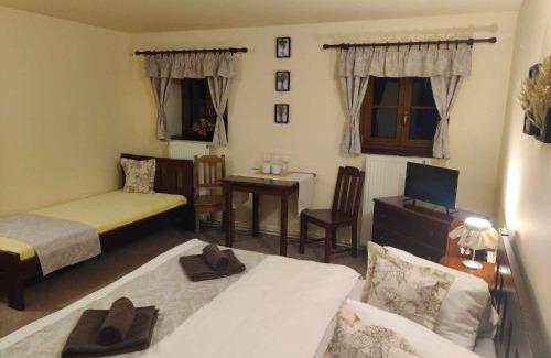 Providing mountain views, Hájenka Knížecí Pláně in Borová Lada offers accommodations, a garden, and a bar. The accommodation provides free Wifi throughout the property, as well as a terrace and a traditional restaurant. At the guest house, every unit has a wardrobe, a flat-screen TV, a private bathroom, bed linen, and towels. The rooms are equipped with heating facilities. Buffet and continental breakfast options are available daily at the guest house. Guests at Hájenka Knížecí Pláně will be able to enjoy activities in and around Borová Lada, like cycling and hiking. A children's playground is also available for guests at the accommodation. Ceske Budejovice Airport is 46 miles away.