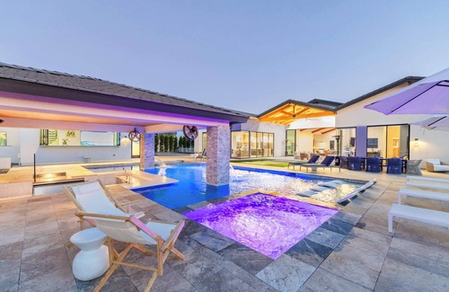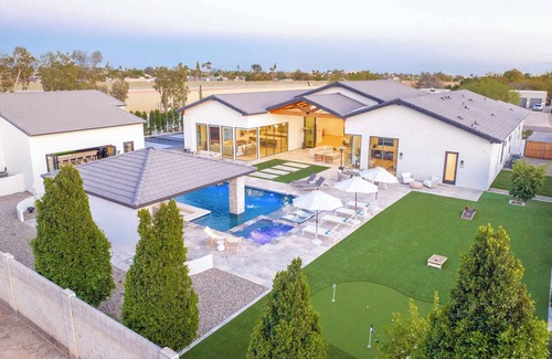HÓZHÓ Desert Hills | Golf Sim | Pool | Pickleball has 9 Bedrooms , 9 Bathrooms, and max occupancy of 24 people. The minimum rental for this property is 1 nights, but this can change depending on the season you plan on staying. Previous guests have given good rated it, and VRBO labeled it a top-rated House because of the excellent services rendered by the owner or manager of this House, and has consistently provided great experiences for their guests. Most families or guests that use it recommend it to their friends and some of them are repeat guests. House has a friendly neighborhood, and the Desert Hills North has interesting places to visit. If you want to learn more about the House in Desert Hills North, such as places to visit and things to do nearby, you can check below to learn more.
